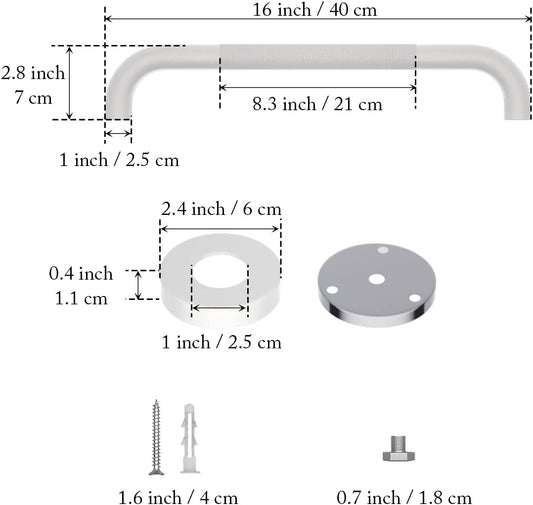 16 Inch Anti Slip Shower Grab Bar Oil Rubbed White, Munzong Bathroom Grab Bar, Knurled Bathroom Balance Bar,Safety Hand Rail Support Handicap Elderly Injury Senior Assist Bath Handle